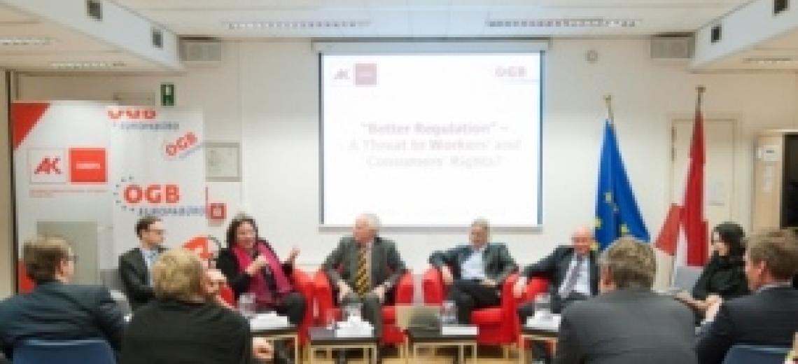 Verstärkte Bemühungen zur Rechtsvereinfachung gibt es bereits seit 1995. Eine eigene ExpertInnengruppe dazu, die „Hochrangige Gruppe im Bereich Verwaltungslasten“ unter der Führung von Edmund Stoiber (sogenannte Stoiber-Gruppe), war zwischen 2007 und 2014 tätig. Neben ArbeitgebervertreterInnen waren auch vier Mitglieder von Gewerkschaften und zivilgesellschaftlichen Organisationen in dieser Gruppe. Der Europäische Gewerkschaftsbund war zuletzt durch Heidi Rønne Møller, internationale Sekretärin der dänischen Angestelltengewerkschaft, vertreten. In ihrem Eingangsstatement gab sie Einblicke in die Arbeitsweise der Stoiber-Gruppe. Dort wurde die unausgewogene Besetzung der Gruppe dazu genutzt, kritische Positionen weitgehend auszublenden. Insbesondere der Vorsitzende legte seinen Schwerpunkt ganz klar auf Entlastungen für Klein- und Mittelunternehmen (KMU). Grundsätzlich konzedierte Rønne Møller, dass die Agenda „Besseren Rechtsetzung“ per se keine Gefahr für ArbeitnehmerInnen, KonsumentInnen und die Umwelt sei, sofern sie nicht ideologisch missbraucht werde.