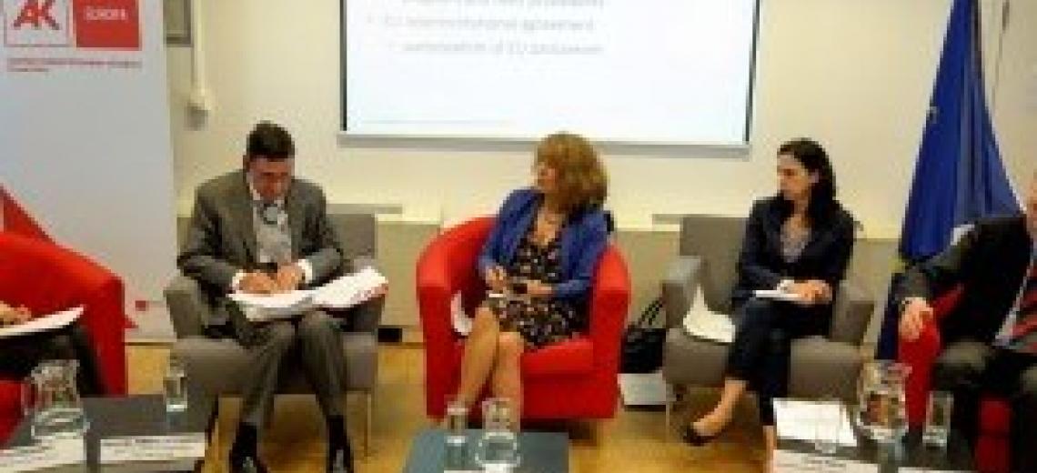 Éva DESSEWFFY von der AK Wien wies auf drei Kernbedenken der ArbeitnehmerInnenvertrung hin: Zunächst kritisierte sie die Nicht-Einbindung des Europäischen Parlaments, was demokratiepolitisch bedenklich sei. Weiters merkte sie an, dass TTIP als „Projekt der höchsten Standards“ zwar wünschenswert gewesen wäre, da es zurzeit allerdings nach dem Gegenteil aussehe, müsse man sensible Bereiche wie die Gesundheitsversorgung auf jedem Fall aus dem Abkommen ausnehmen. Als schlechtes Omen wertete sie die Pläne der Kommission, Pestizidgrenzwerte in Lebensmitteln auf die internationalen Minimumvorgaben abzusenken. Schließlich wies sie darauf hin, dass – wie so oft im Umfeld der Kommission – die Wirtschafts- und Industrielobbies auch im Bereich der Handelspolitik überrepräsentiert seien und die VertreterInnen der ArbeitnehmerInnen nur schwer Einfluss auf die Gestaltung des Abkommens nehmen könnten. Ausdrücklich warnte sie vor einer Verwässerung des sogenannten Vorsorgeprinzips in Europa – es müsse weiterhin gesichert sein, dass z.B. Chemikalien erst in den Umlauf kommen dürfen, wenn zweifelsfrei feststehe, dass keine Gefahr von ihnen ausgehe. Der Vorschlag der Kommission, dies in einer Fußnote unterzubringen, sei zu schwach.