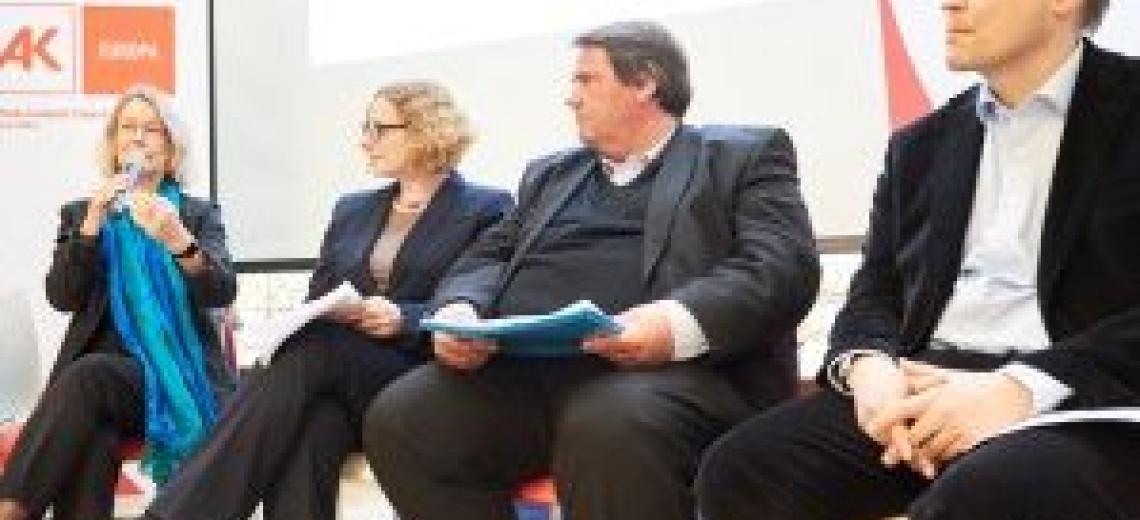 ZurückFrank Ey (Abteilung EU & Internationales, Arbeiterkammer Wien) veranschaulichte zu Beginn die schwierige Lage, in der sich der europäische Binnenmarkt aufgrund der steigenden Arbeitslosigkeit und dem schwachen Wachstum zurzeit befindet. Dabei kritisierte er, dass die angebotsorientierte Ausrichtung des Binnenmarkts und bei der Better Regulation Agenda gegebene Vorrang für KMUs keine nachhaltige Strategie sein kann. Positive Aspekte dagegen sind seiner Meinung nach die vorgeschlagenen Maßnahmen der Kommission in den Bereichen der digitalen Wirtschaft und des öffentlichen Auftragswesens. Denn besonders hier brauche es klare Regelungen im Interesse der ArbeitnehmerInnen und KonsumentInnen.