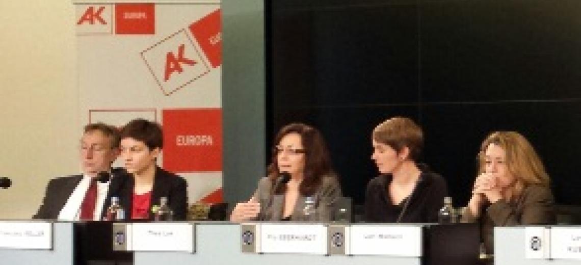 This week, Brussels was entirely focussing on the planned Free Trade Agreement of the EU with the United States: apart from a panel discussion, co-organised by AK and ÖGB, there was, among other, a half-day conference by the Greens in the European Parliament as well as an evening event of the Brussels office of North Rhine-Westphalia. MEPs, representatives of the EU Commission, Trade unionists as well as civil society representatives, who attended these events, presented their positions.