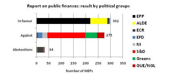 The Parliamentary Rapporteur Hoang Ngoc of the Progressive Alliance of Socialists and Democrats suggested in two Proposal Amendments to set up a public rating agency. The private rating agencies had unfortunately failed in assessing risks, which had caused the financial and economic crisis, correctly. These suggestions as well as his statement that an immediate budget consolidation would put economic growth at risk and could even lead to social unrest, however, did not gain any support. Hoang Ngoc's request to introduce a Financial Transaction Tax and to implement a tax system, which would effect a better balance between labour and capital, also failed to find a majority. Instead, the text now provides for the increase in productivity of social services, which probably means social budget cuts whilst retaining the services at the same time and an increase in the pension age to take the pressure of public finances.